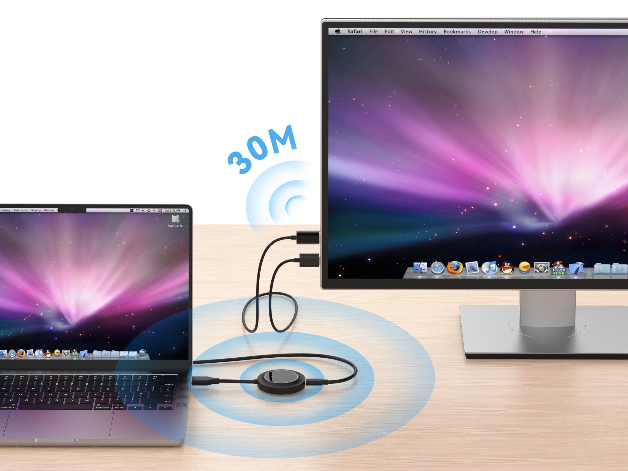Mit integrierter 5-GHz-Funktechnologie ermöglicht es flüssiges, verzögerungsfreies Streaming in 1080p bei 60 Hz mit einer Reichweite von bis zu 30 Metern. Die Einrichtung ist unkompliziert dank Plug-and-Play, ohne Apps, Treiber oder WLAN.