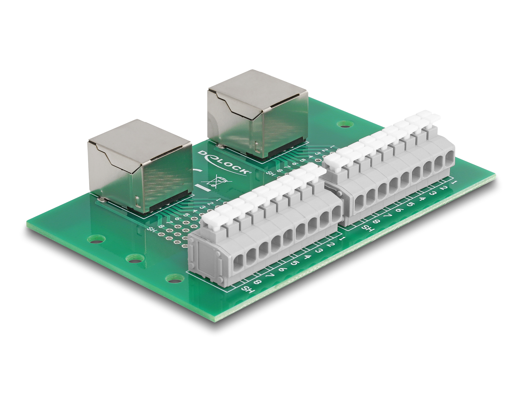DeLOCK RJ45 2 x Buchse zu 2 x Terminalblock mit Drucktaster für Hutschiene