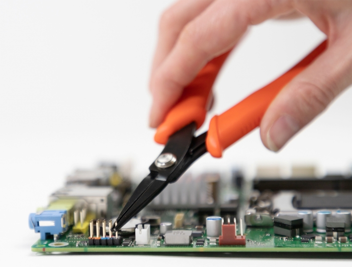 Die Zange verfügt über verzahnte Greifbacken, die für einen besseren Halt bei glatten, flachen Materialien sorgen und das Arbeiten somit vereinfachen. Die Griffe sind isoliert und das Gelenk ist mit einem Edelstahlniet versehen, während die gummierte Struktur für einen optimalen Halt sorgt.