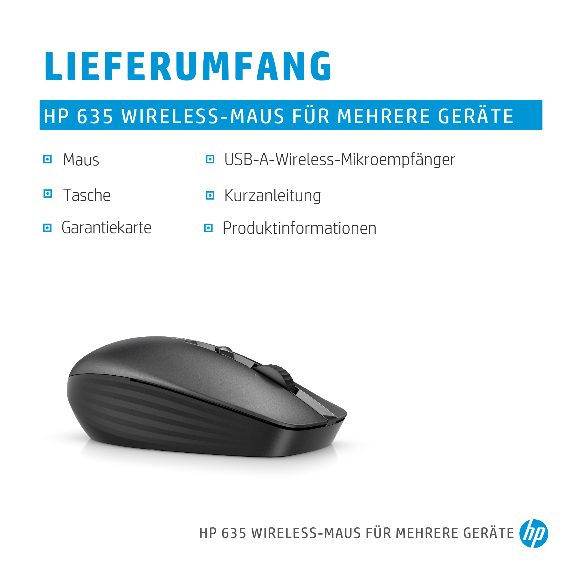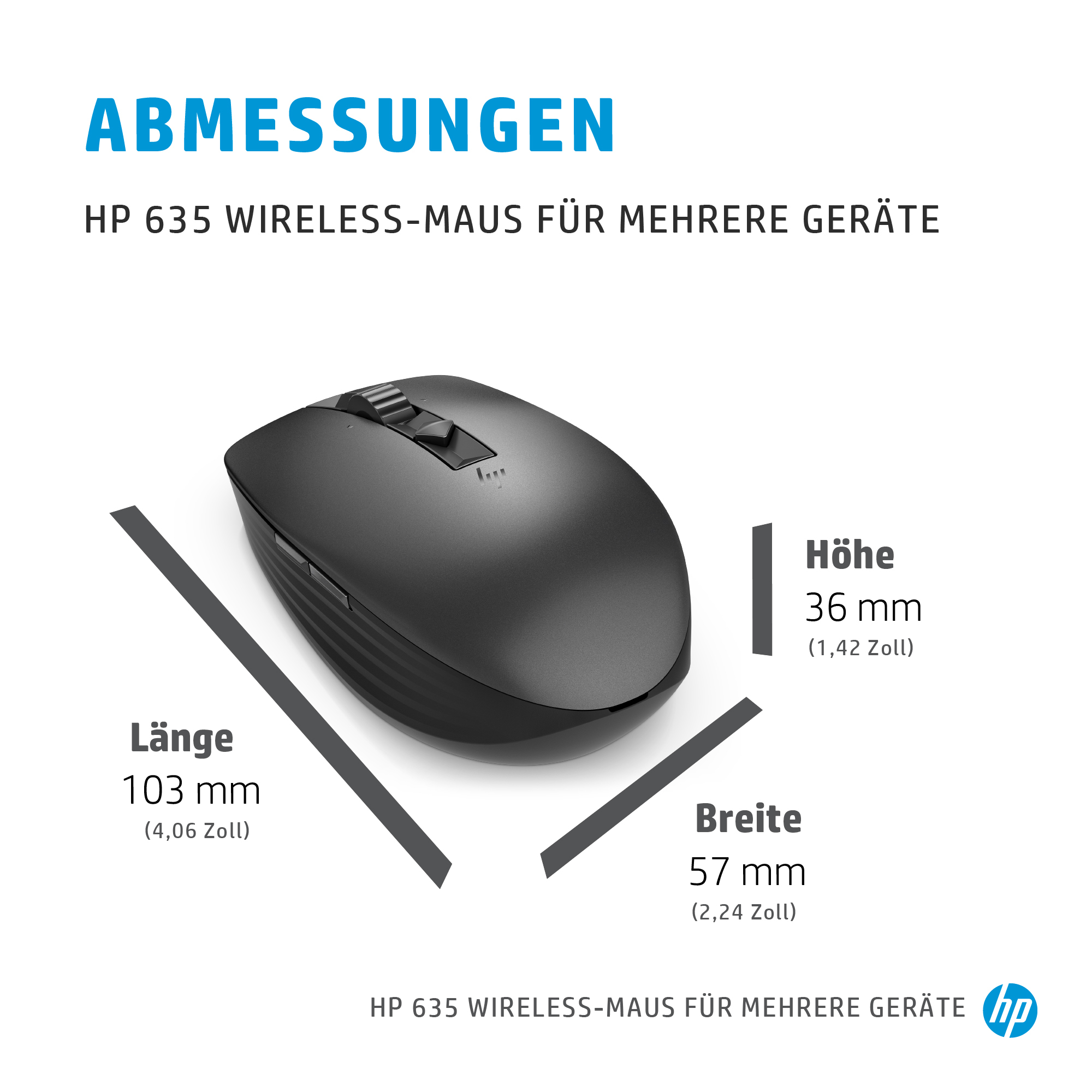 Ihre Maus jedes Mal neu koppeln zu müssen, wenn Sie das Gerät wechseln, gehört der Vergangenheit an. Koppeln Sie die HP 635 Wireless-Maus für mehrere Geräte über einen USB® Nano-Dongle mit bis zu 3 verschiedenen Geräten oder über Bluetooth® mit bis zu 2 Geräten. Sie können sogar Dokumente von einem Gerät auf ein anderes transferieren[1].