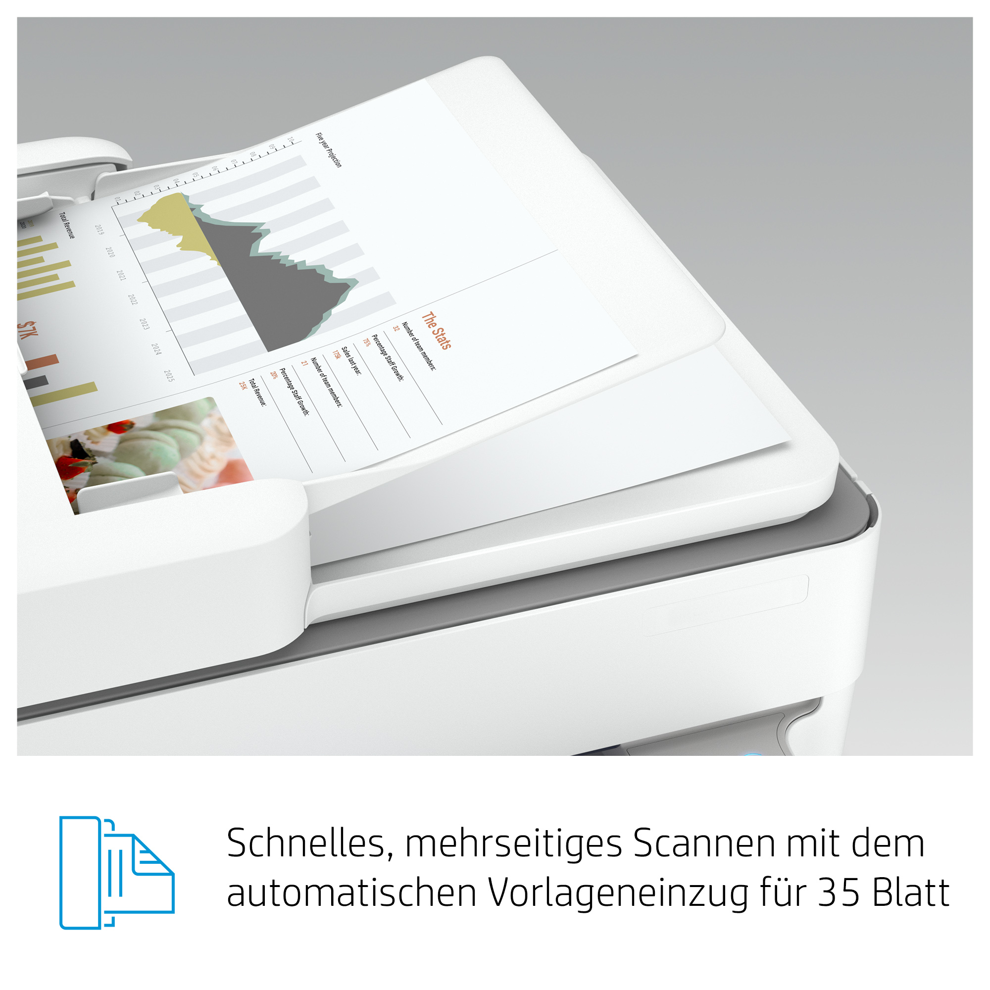 Schnelles Arbeiten ohne manuellen Eingriff – die automatische Papierzuführung für 35 Seiten hilft Ihnen, Scans und Kopien zügig zu erstellen.