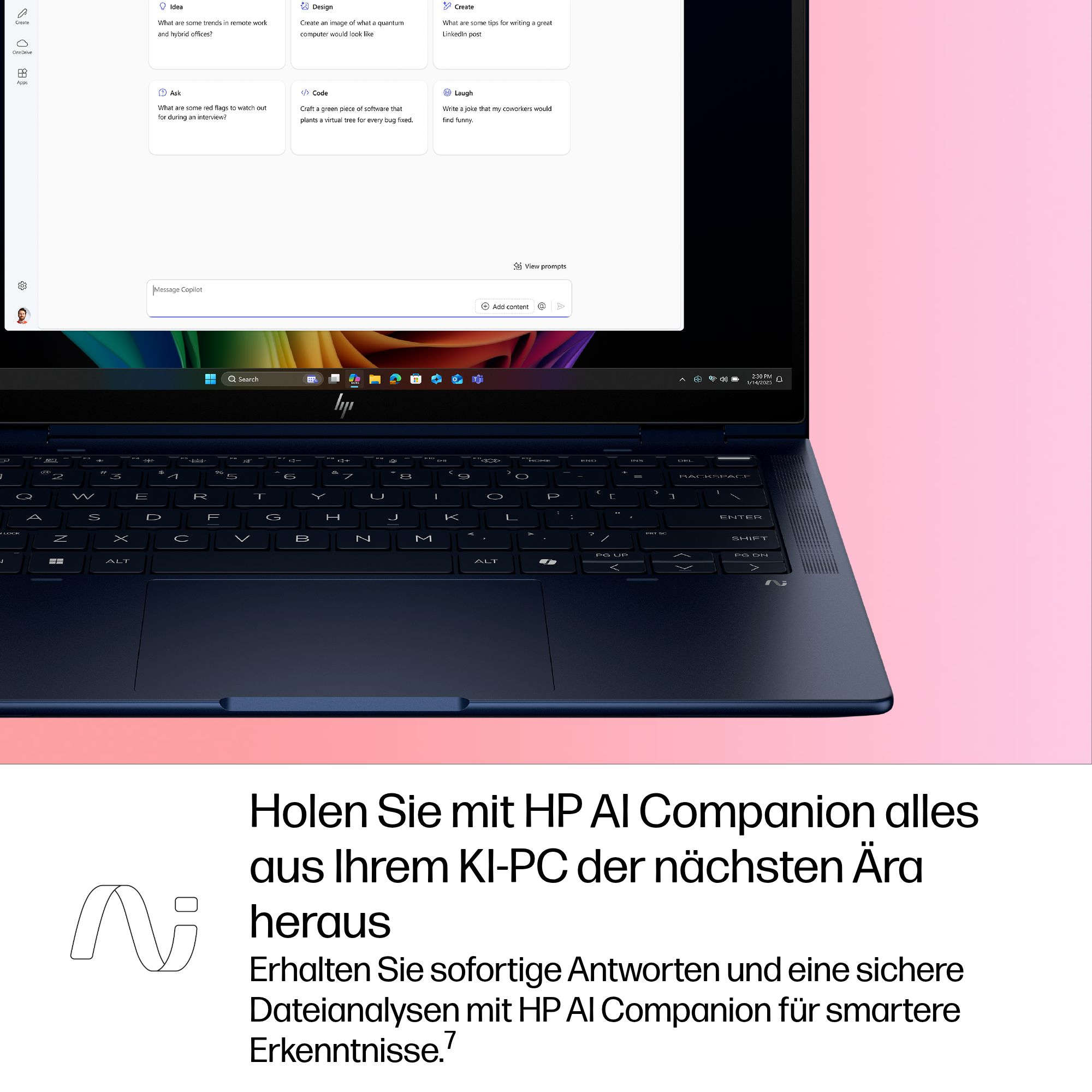 Bringen Sie Ihr Unternehmen mit KI voran, die Ihre eigenen Daten nutzt, um strategische Geschäftsentscheidungen zu treffen. Entdecken Sie, was Sie mit KI-Anwendungen[4], fortschrittlichen Funktionen für die Zusammenarbeit, vier vielseitigen Anwendungsmodi und optimierter Akkulaufzeit auf dem HP EliteBook X Flip G1i, der neuen Ära der KI-PCs, erreichen können.