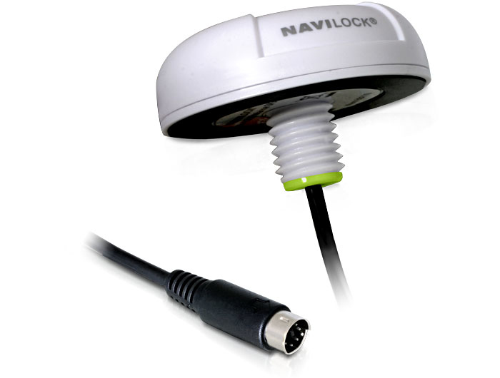 Der MD6 Universalanschluss ermöglicht den Anschluss von optionalen USB oder seriellen Anschlusskabeln. Der NL-622MP GPS Empfänger wurde speziell für die Montage auf weißen Flächen (Boot, Wohnmobil, Bus etc.) entwickelt. Er fügt sich durch das weiße Gehäuse, unauffällig in das Fahrzeugkonzept ein.