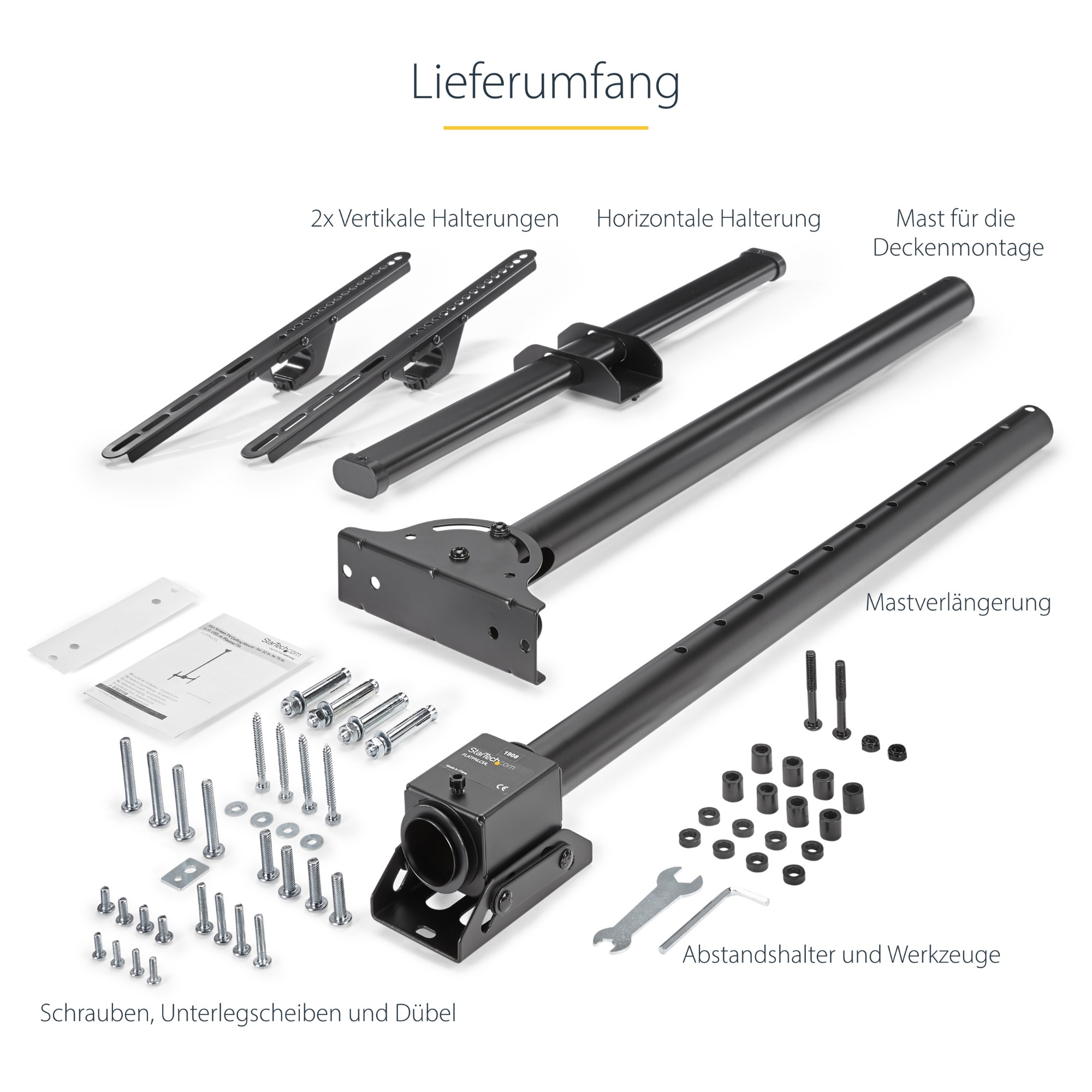 StarTech.com TV-Deckenhalterung, Hängende Einzelbildschirm-Vesa-Halterung für 32"-75" TVs/Bildschirme - Höhenverstellbar